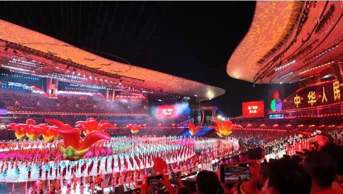 11月9日,中华人民共和国第十五届运动会在广州“广东奥体中心”盛大开幕。本届十五运会,是全国首个由广东、香港、澳门三地共同承办的大型综合性运动会,也是中国规模最大、水平最高、影响最广的综合性运动会。