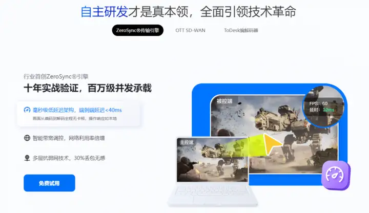远控软件的核心竞争力,始终绕不开连接速度和操作流畅度这两个关键技术指标。ToDesk深谙此道,自产品诞生之初便将技术研发置于首位。