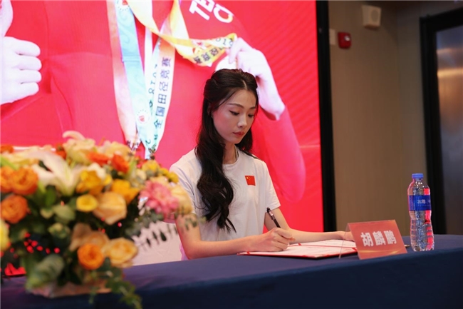 女子跳高全国冠军胡麟鹏在南数集团品牌代言签约仪式上
