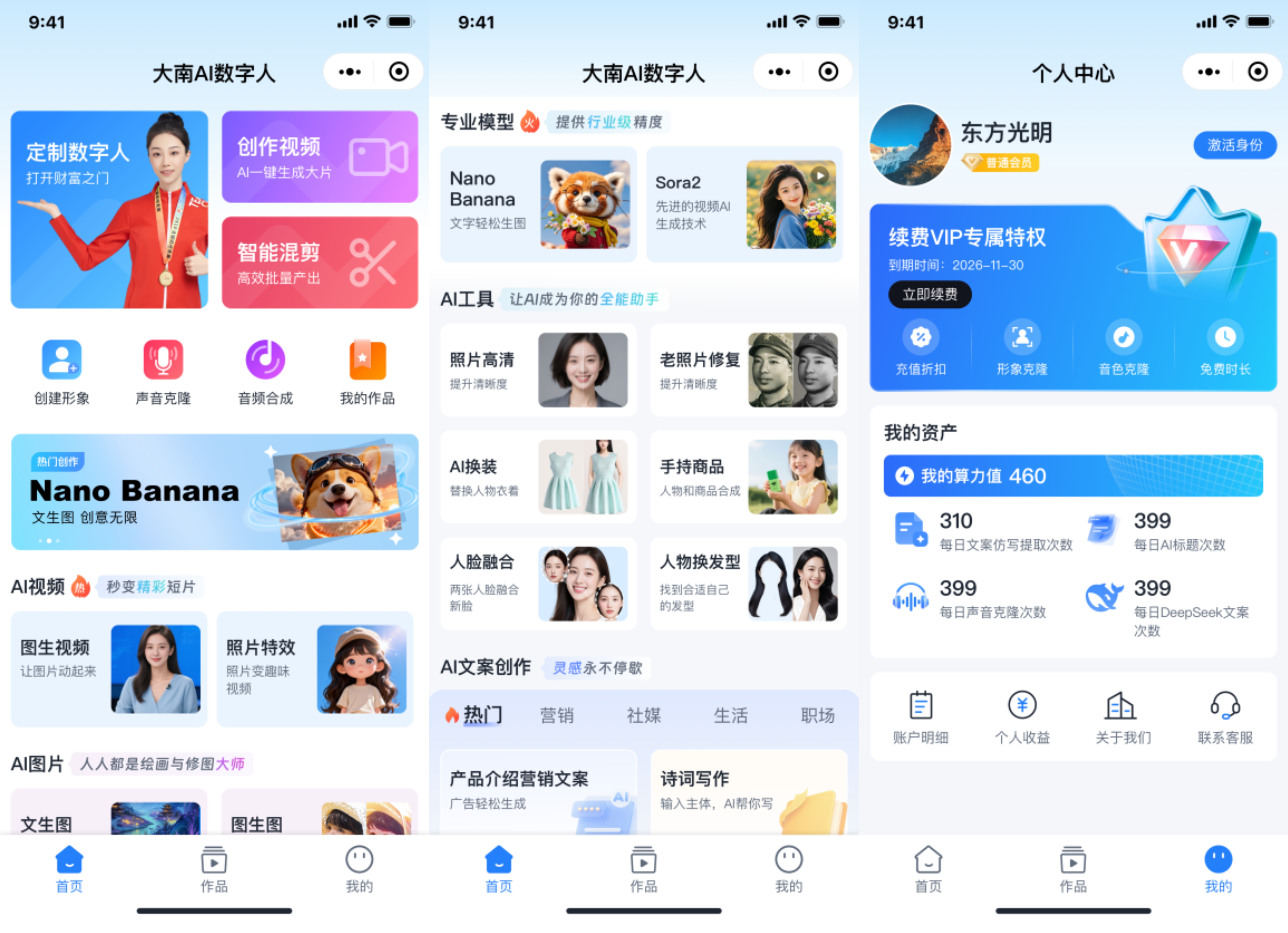 作为南数集团自主研发的核心产品,大南 AI 数字人依托自主构建的算力底座支撑与行业垂直大模型,深度融合自然语言理解、多模态生成、语音克隆、形象克隆等全栈自研核心算法,广泛应用于短视频内容创作、智能直播电商、AI 客服值守、在线教育、农产品推广、非遗文化数字化传播等多元领域。该产品因其“易学、好用、应用广”的产品特性,采用“零门槛接入、一站式服务”的运营模式,已成为广大个人用户与企业主体顺利迈进数字经济大潮的不二选择。